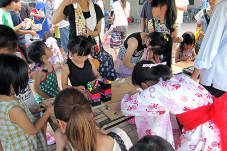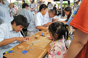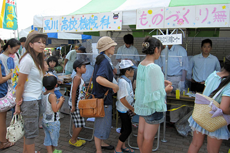 8月5日、黒川高校機械科のみなさんは、地域の一員として、大和町の夏の一大イベント「まほろば祭り」に参加しました。「みんなが楽しめるもの」「危険が伴わないもの」「思い出が形に残るもの」というポイントで話し合い、決定したのは「かんたん鋳造でオリジナルキーホルダーをつくろう!」という企画。被災による心の傷を「モノづくり」で癒したいという思いを込めました。