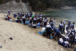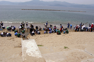 大きな石の撤去や細かい瓦礫や危険物の収集など、高校生だからできる力仕事やきめ細かい作業に汗を流し、安心して素足で歩けるような状況まであと少しという状態にまで砂浜を復活させることができました。