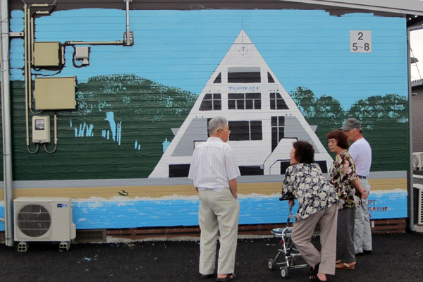 「皆さんの笑顔が見られるだけで、この活動を続けてよかったと思う」完成後、壁画の前で故郷を思い出しながら立ち話をする住民の方々の様子が印象的だったようです。
