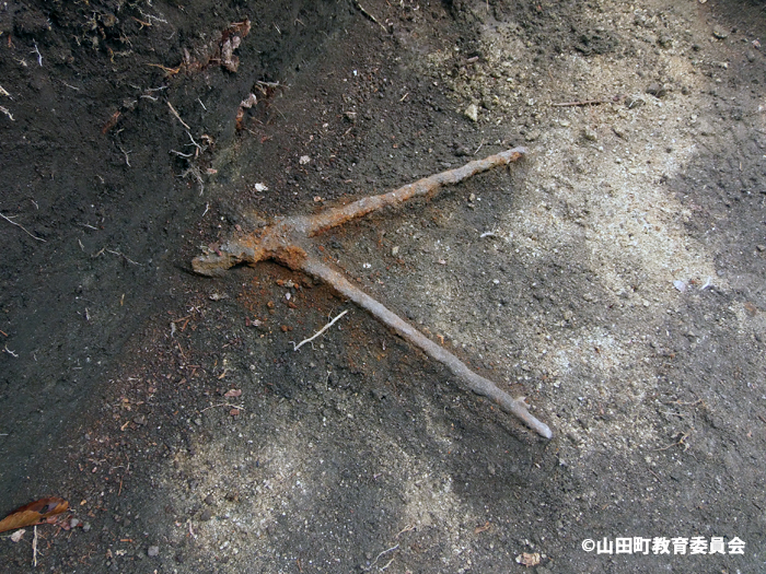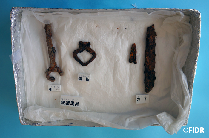 新しい集会施設は山を削って造成する海抜12メートルほどの高台に建設されます。その一帯は遺跡と認定されていたため、埋蔵文化財の事前調査をしたところ、古代の鉄製馬具が出土しました。その歴史的価値が高いことが判明し、造成前に本格的な発掘調査及び保存調査が行われることになりました。