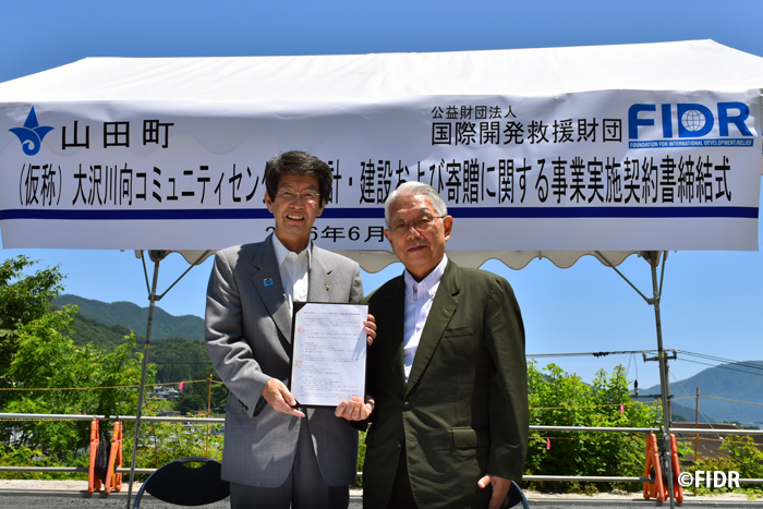 なお、地鎮祭後、山田町とFIDRの間で「(仮称)大沢川向コミュニティセンター設計・建設および寄贈に関する事業実施契約書締結式」も行われました。