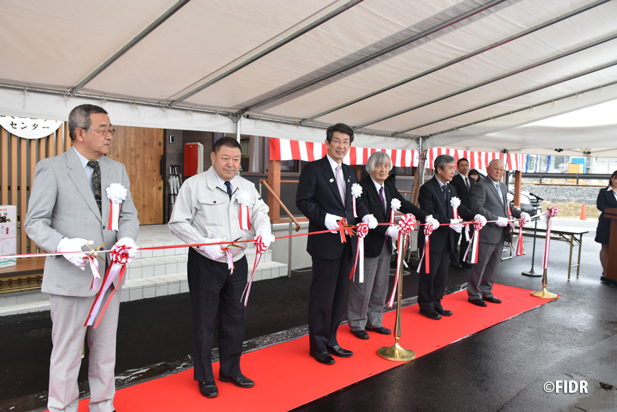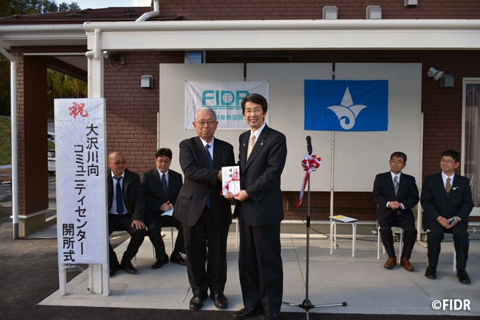 FIDRは、津波で流出した岩手県山田町大沢川向地区の集会施設「大沢川向コミュニティセンター」建設を支援してきましたが、このほど12月に完成し、12月11日に開所式を行いました。式には山田町佐藤町長、FIDR江川常務理事、地域住民ら約50人が集いました。