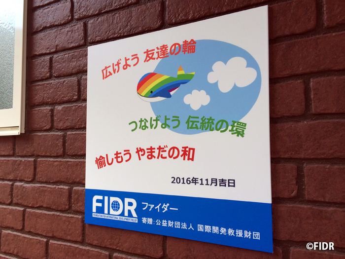 「広げよう 友達の輪、つなごう 伝統の環、愉しもう 山田の和」FIDRが震災後のコミュニティ形成支援活動の中で使ってきたキャッチフレーズです。新しいセンターにおいても、山田町のみなさんが震災後の新しい生活の中で交流を深め、災害など大変な時も、お互いに助け合えるようなつながりができることを期待しています。
