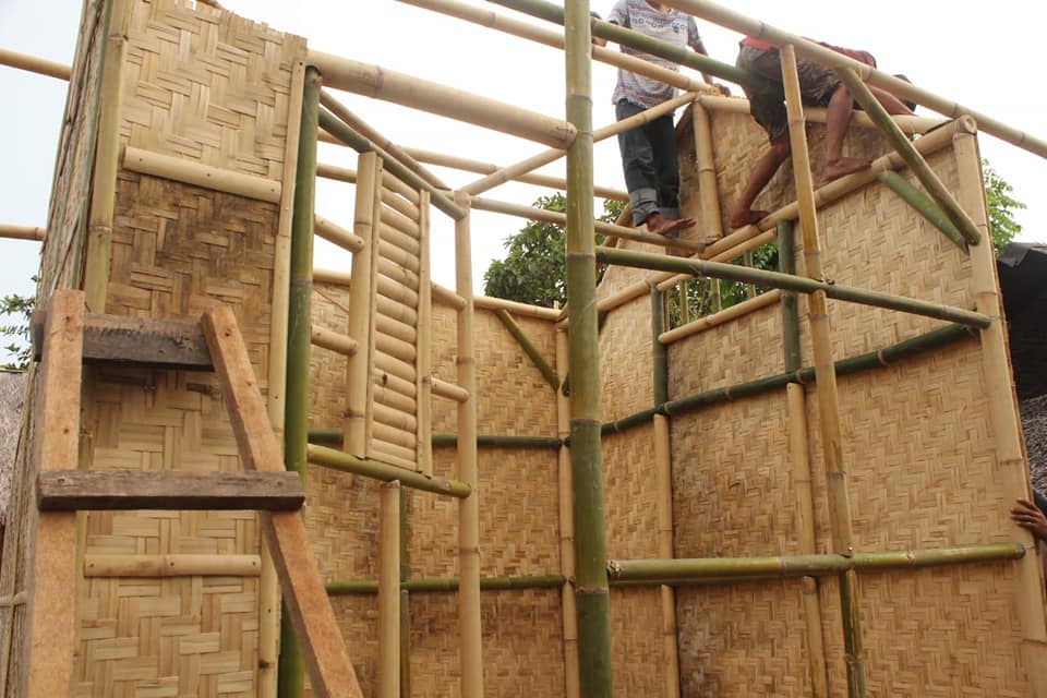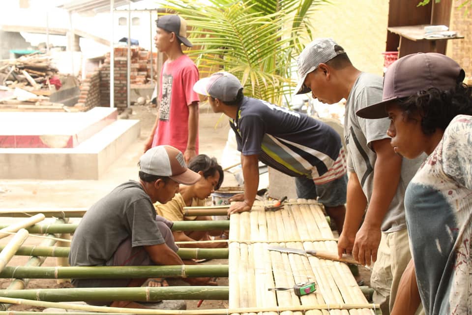 FIDRが支援する仮設住宅は、日本のようなプレハブ造りの建物ではありません。高温多雨の現地の気候に合うよう風通しがよく、かつ現地の資材と技術を用いて安価に設置できることが大切であることから、ロンボク島の丘陵部に豊富にある竹材を使って作ります。この仮設住宅は、耐久性も居住性も備え、人々が自宅を再建するまで十分に役立つと考えます。