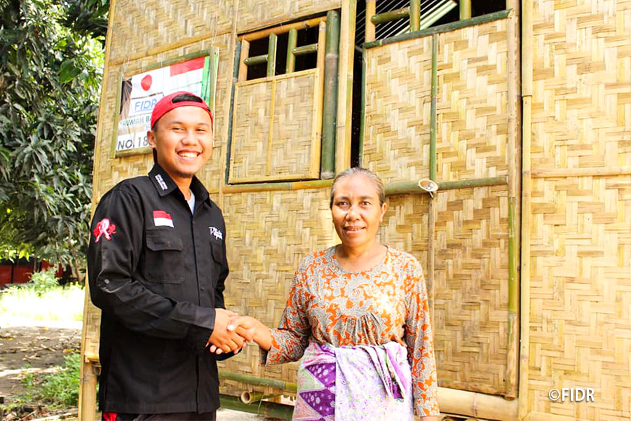 FIDRは、ロンボク島で被災した住民が最も必要としているのは風雨をしのぎ、安眠とプライバシーを得ることができる仮設住宅であると判断し、昨年12月より、現地のNGOと共同で仮設住宅の設置を進めています。これまでに、約25棟が完成し、入居した人々から「風雨がしのげ、快適に過ごせるようになりました」といった声が聞かれています。