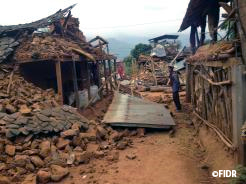 4月27日付の報道によると隣接国も合わせて死者数4000人超の甚大な被害が出ています。FIDRが2011年から支援活動を展開しているダーディン郡はカトマンズより震源地に近く、多くの家屋が倒壊するなど被災状況は深刻です。