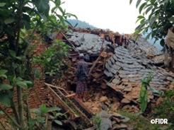 震災発生時、FIDRネパール事務所の大槻修子所長以下の職員は、ダーディン郡内の山中で業務に従事していました。幸いに職員に被害はなく、安全を確保しつつ周辺地域の状況を確認しました。その結果、75%以上の家屋は全壊または半壊の状況となっていることを把握しました。