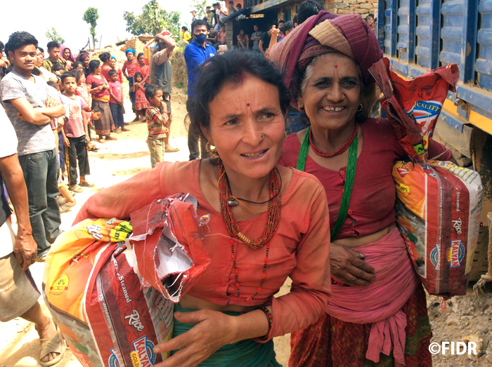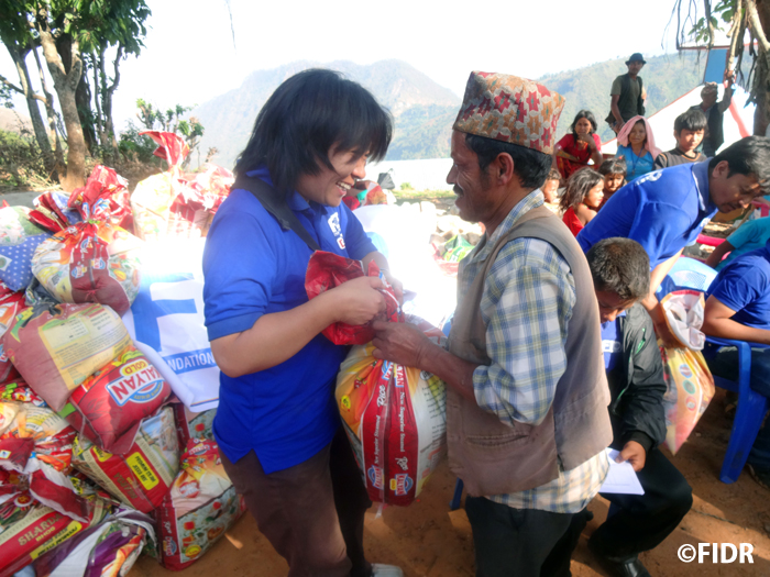 支援に対し現地の方々は「やっぱりFIDRは忘れずに最初に来てくれた」と大変喜んでくださっています。ネパールの他の地域では物資の配布の際に住民間の争いが起きている地域もあるようですが、ここでは住民の方々が助け合いながら、穏やかに配布作業が進んでいます。