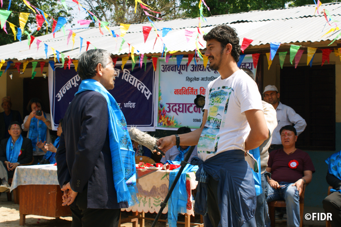 教育省のアスタ・ラマ氏は式典の中で「国や国際援助機関が成し得ていないことをFIDRはやり遂げた」と述べ、FIDRが地域と一丸となって学校建設に取り組んだことを評価し、震災後では国内最初のケースとなる校舎の完成を参加者と共に喜びました。