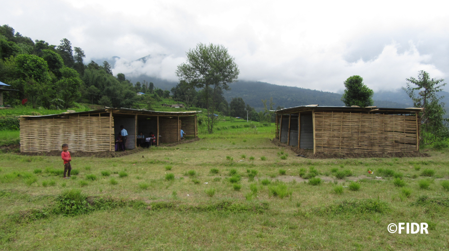 学校の再建も、各地でスピードを上げながら進められています。FIDRも現在、ラメチャップ郡において、2つの小中学校の校舎再建に取り組んでいます。これらの学校の子どもたちは、今なお、地震後に地域住民が協力して竹やトタン板で造った簡易校舎で学んでいます。