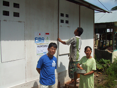 FIDRは、震災発生から1週間後に現地入りし、パダン市とその近隣地域での調査を行いました。被害の大きかった山間部の家屋は、柱を持たないコンクリートの壁で屋根を支える構造のものがほとんどであるため、押しつぶされたような形で崩壊している家屋が多数あり、被災者はかろうじて残った建物の中で不安な中での生活を送っていました。
