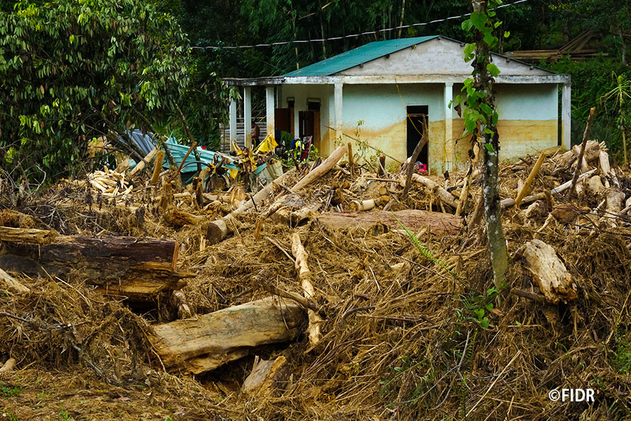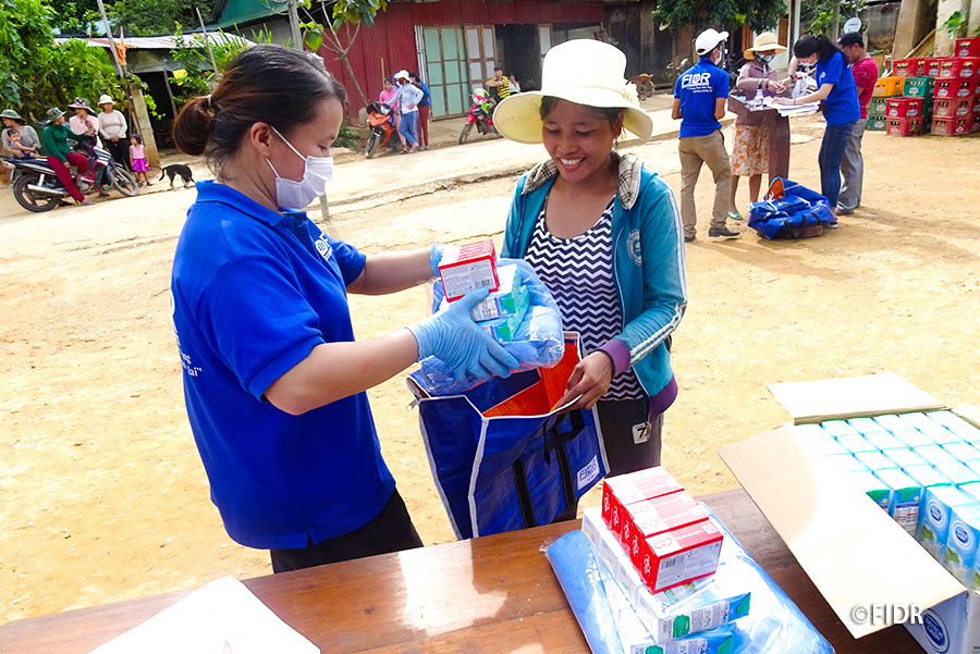 FIDRが長年支援しているクァンナム省タイヤン郡での被害も甚大でした。130戸以上の家屋が全壊し、3,300世帯以上が洪水に見舞われました。農作物や家畜への被害も大きく、その被害は日本円で8億円相当にのぼりした。FIDRは、タイヤン郡当局からの要請を受け、10月9日、被災した人々に緊急支援物資を提供しました。