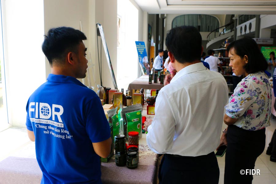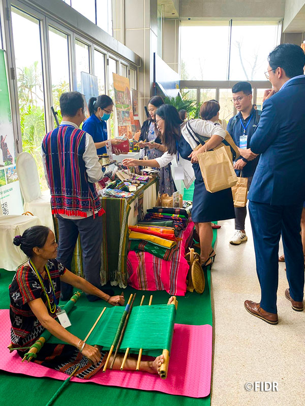 FIDRは、ベトナム観光庁から推薦を受けてこのフォーラムに参加し、同省のナムザン郡で少数民族カトゥー族とともに行ってきた「コミュニティー・ベースド・ツーリズム(CBT:地域資源を活用した自立的な観光開発)」について事例共有した他、ナムザン郡共同組合が、カトゥー族をはじめとする中部山岳少数民族の作った製品を展示したり、織物職人やかご職人による実演を行いました。