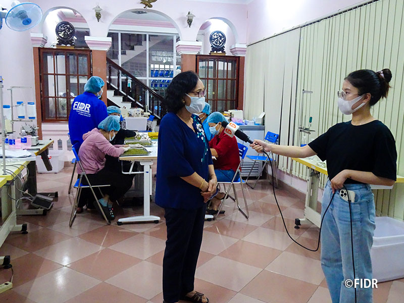 現地のテレビ局から取材を受けるダナン市慈善・チャイルドライツ保護協会のスタッフ