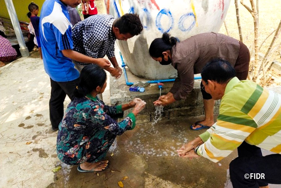 The spread of COVID-19 hit the peak in mid- March and no new cases have been reported since mid-August. FIDR has resumed the project from the middle of June. At this time, people in the project site are returning to their normal lives. However, they gradually lose attention to hygiene. Mao Sugita, project manager, said, "We have recommended hand washing as one of the preventive measures even before the spread of coronavirus, and now, it has become more important to make a habit of practicing a hygienic lifestyle. We need to make a change in the villagersf behavior", for example, through conducting and giving guidance on handwashing and hygiene at all the meetings and trainings.