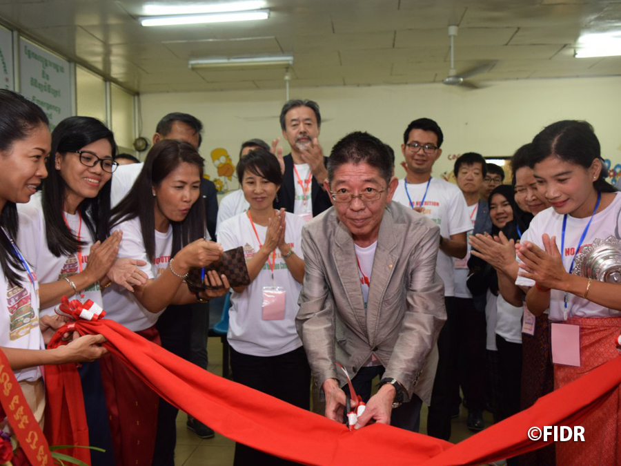 On the same day, the ribbon cutting ceremony of the gNutrition Counseling Roomh was held. NPH became the first national hospital in Cambodia that had a department specialized in providing advice for nutrition. Japanese nutrition experts dispatched by FIDR have trained DNfs staff for starting the counseling service so far.