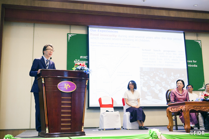 For the first time in Cambodia, the first Food-Based Dietary Guideline (Cambodia version - Food Balance Guide) for children in school age was finally completed by the effort of FIDR and related ministries, international organizations and NGOs in Cambodia in developing the guideline. This dietary guideline was officially certified by the Ministry of Health of Cambodia and became a new guideline for nutritional intake of children. During the development of the guideline, there were many issues to be cleared, therefore, it was a pleasure for FIDR staffs to be able to successfully conduct this FBDG launching seminar.