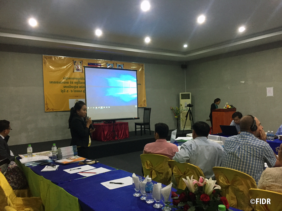 FIDR staff introducing the Cambodian Food-Based Dietary Guidelines for school-aged children at the workshop