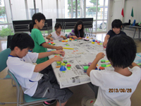 2012年より、クラブの子どもたちは、社会貢献活動の一環としてクリスマス飾りを製作し、町の商工祭で販売した収益金をFIDRにお寄せくださっています。3年目の2014年はこれに加え、子どもたちが社長、経理部長、パティシエなどの役割を担って「経営」する「てづくりcafe」を初出店し、フェアトレードコーヒーの販売も行いました。
